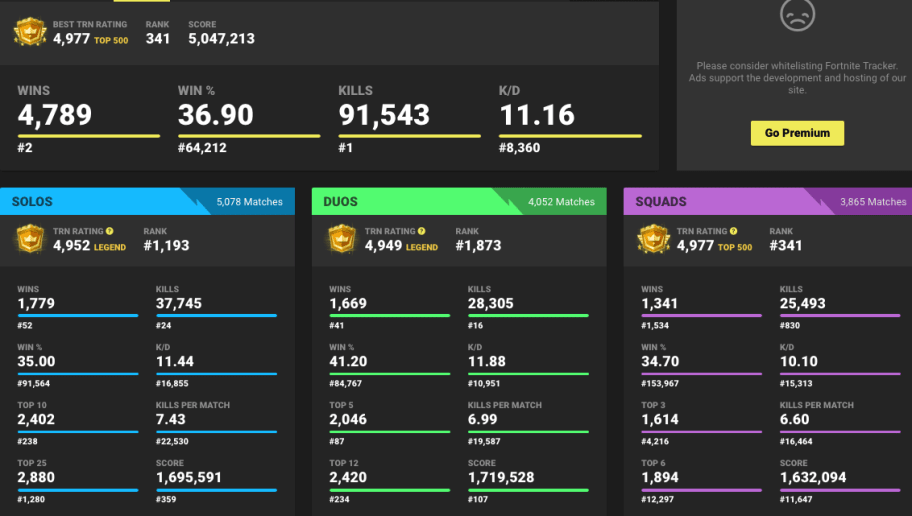 Fortnite stats tracker, match history, advanced fortnite tracker.